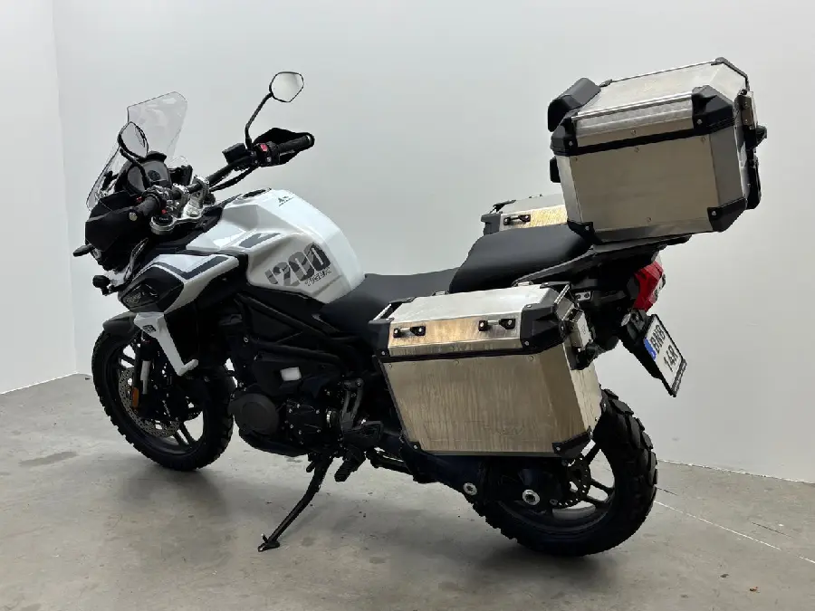 Mycket fin Triumph Tiger 1200 Alpine Edition 4400mil. Utrustad med Originalväskor - Farthållare - Handtagsvärme - Sätesvärme - ABS - Sumpguard - Centralstöd och Körlägen.