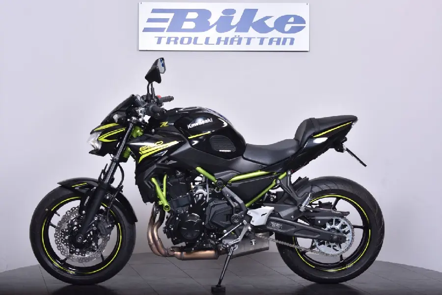 Nu säljer vi en Z650 från 2020 som knappt är inkörd! *Nästa besiktning senast: Bike utför besiktning *Senaste service aukto-verkstad: 103mil *Nästa service: Bike servar innan leverans *Effekt: 68hk: *Garanti: 3 mån trafiksäkerhetsgaranti (samma som SMR), max 300 mil. *Utrustning: Tail-tidy (org medföljer ej), Mc:n har genomgått ett inbytestest på 48 punkter saker som ska göras innan leverans: Besiktning. Service *Bra att veta: Framdäck 90% kvar. Bakdäck 90% kvar. Fint skick! Instruktionsbok- servicebok och extranyckel finns. Månadskostnad baserat på: 40% Kontantinsats. 50% restvärde 36 månader... löptid. Detta fordon kan köpas online på https://www.biketrollhattan.se/mconline, där kan ni också se mer om finanslösningar och transport av ditt fordon. Z650 Z 650 Kawa Naked Nakenhoj naken hoj naked bike