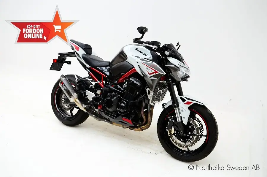 Kawasaki Z900 2022 – en rå och stilren streetfighter som kombinerar kraft, design och teknik i ett perfekt paket. Den 948cc fyrcylindriga motorn levererar ca 125 hästkrafter med ett jämnt och responsivt register, perfekt för både kurviga landsvägar och stadskörning.