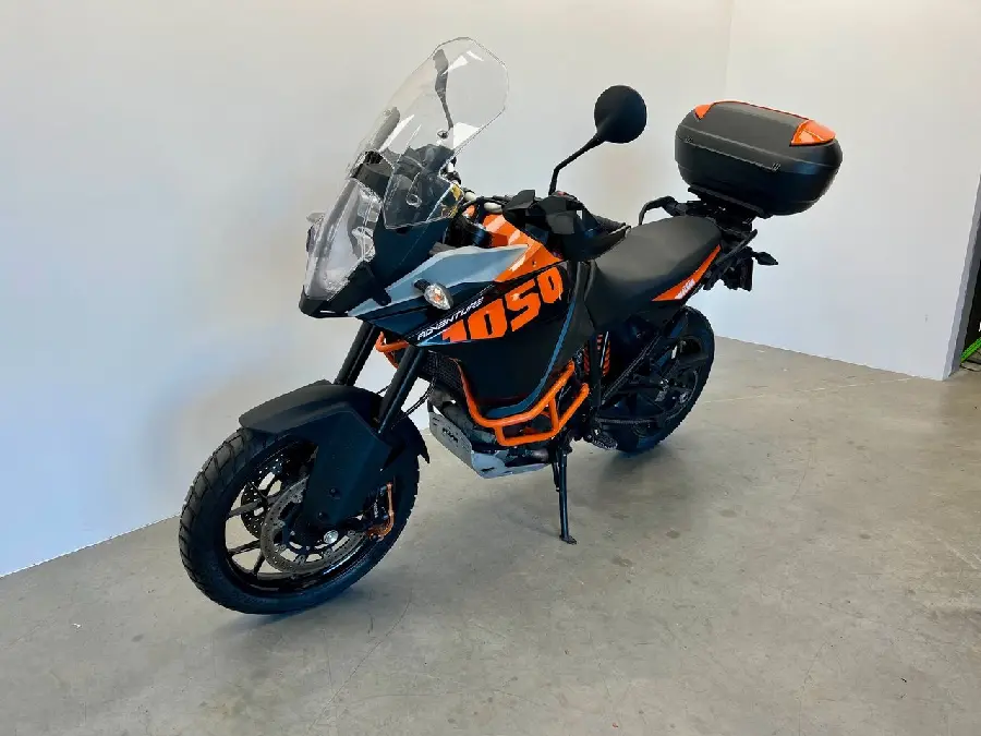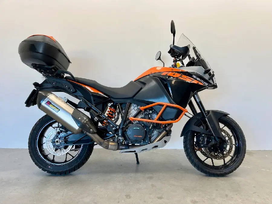 En fin KTM 1050 Adventure med topbox, olika körlägen. motorbåge, hasplåt. Akrapovic slipon.
