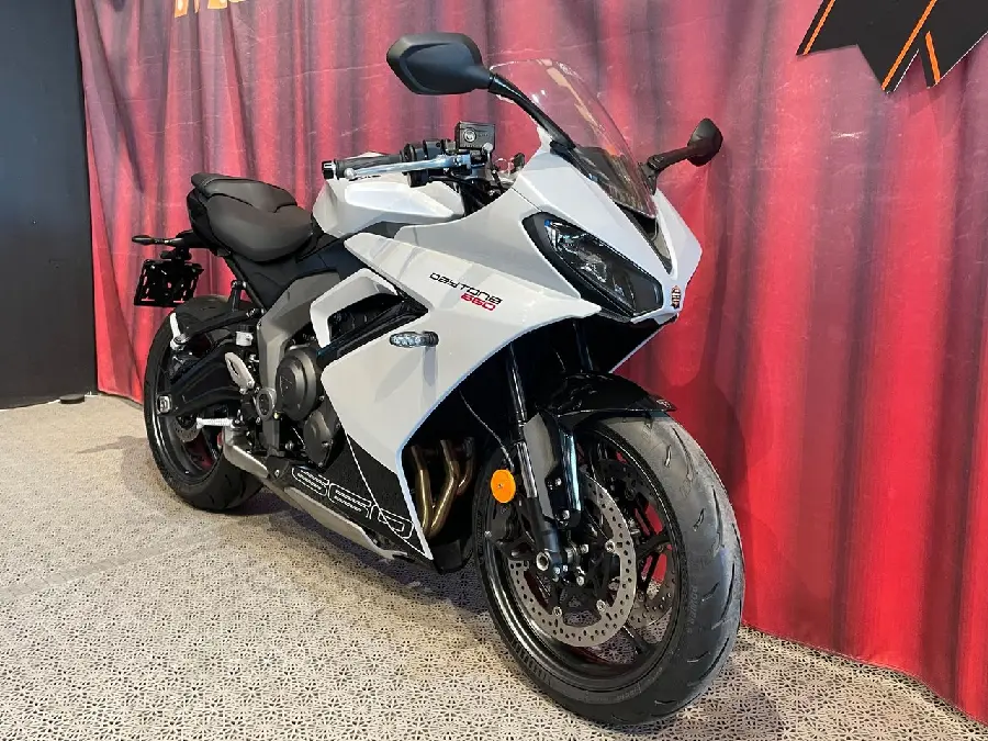 VÅR SISTA FABRIKSNYA 2025 DAYTONA 660! Listpris 114.900kr, nu sänkt hela 15000:-. Lagertömningskampanj med från 2,95% ränta & fri vinterförvaring!