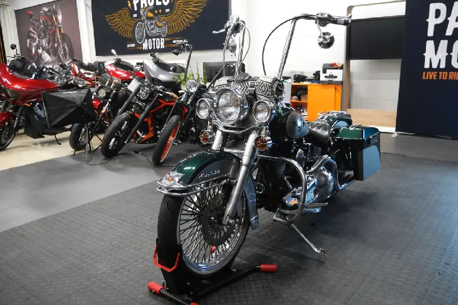I hjärtat av denna skönhet sitter den legendariska Evo-motorn, känd för sin robusthet och pålitlighet. Evo-motorn ger inte bara en autentisk körupplevelse utan levererar också det klassiska Harley-ljudet som alla älskar.