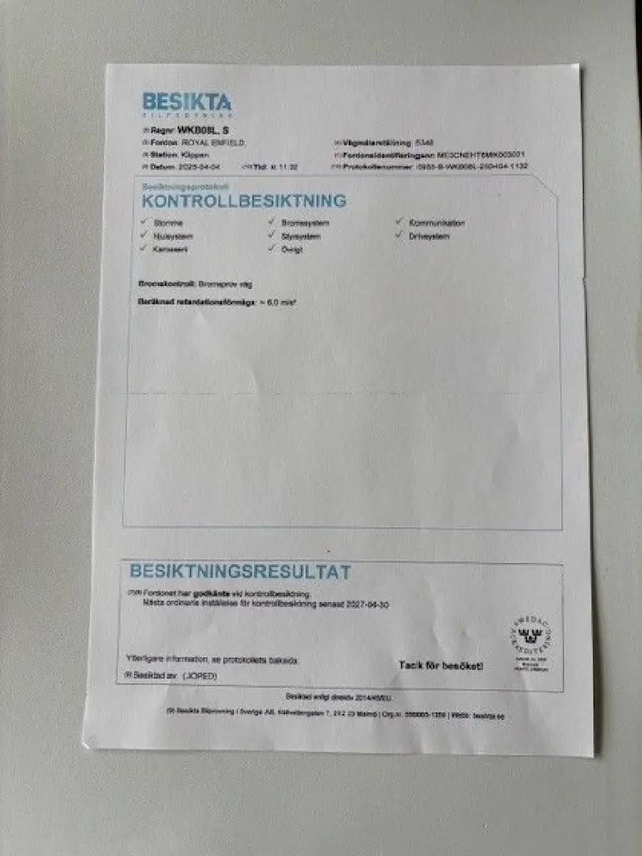 Original avgassystem finnes, nybesiktigad 2025-04-04.