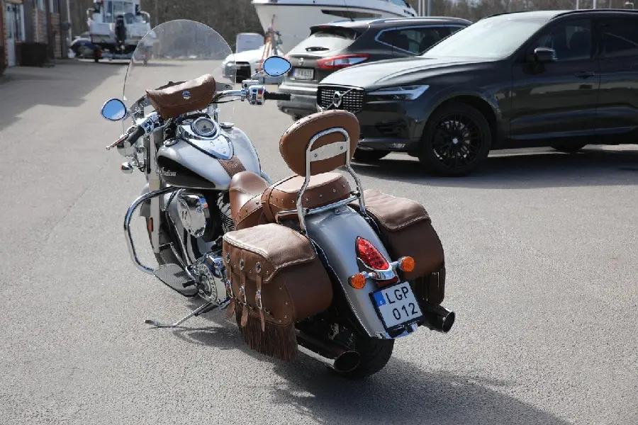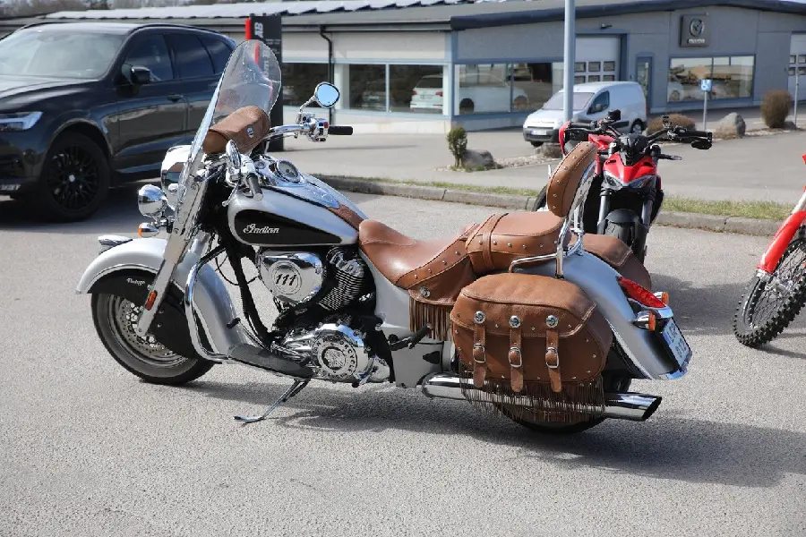Elegant stilig och snygg. Indianerna har visat sig framgångsrika inte bara hos cowboysen i USA utan även i Europa där man utmanar H-D på allvar med sin sköna stil teknik och funktionalitet. Hövding bland indianerna är Chief och i Vintage-utförande som denna fina lågmilare är det sannolikt ett blivande samlarobjekt.