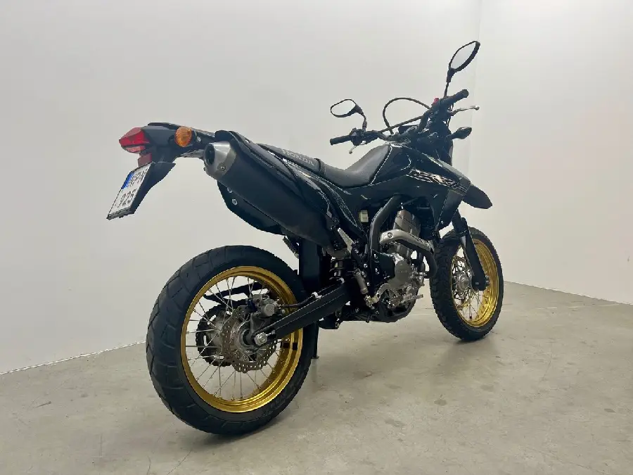 Kanonfin Honda CRF250M ( super motard ) med 364mil på mätaren. Den här busiga motorcykeln bygger på den populära terrängmodellen CRF250L, men med modifieringar för landsvägskörning som 17-tumshjul med bredare däck, reviderad fjädring och en större frambroms. 17kw så A2-körkort går bra.
