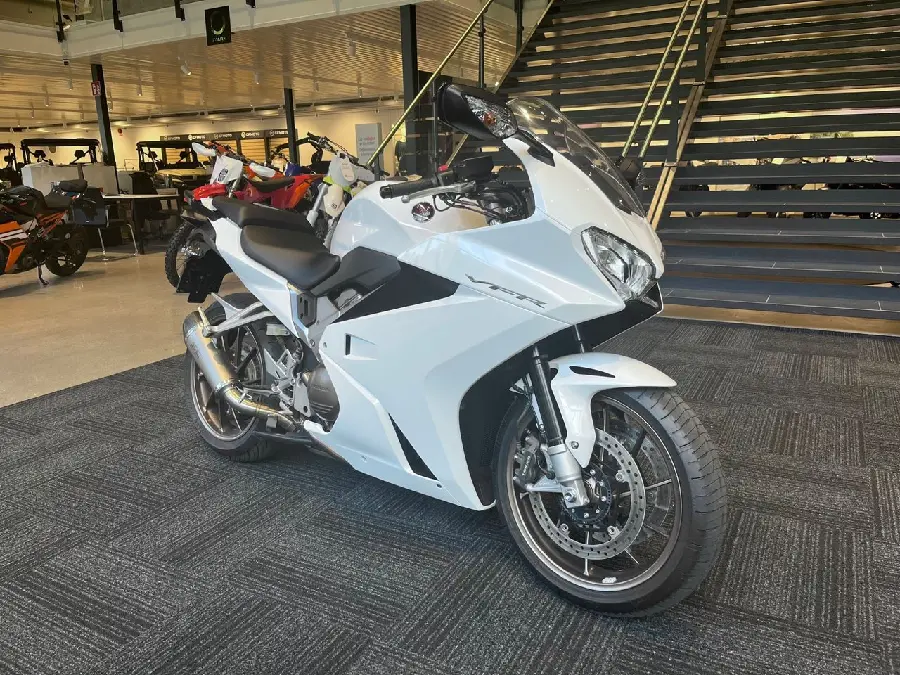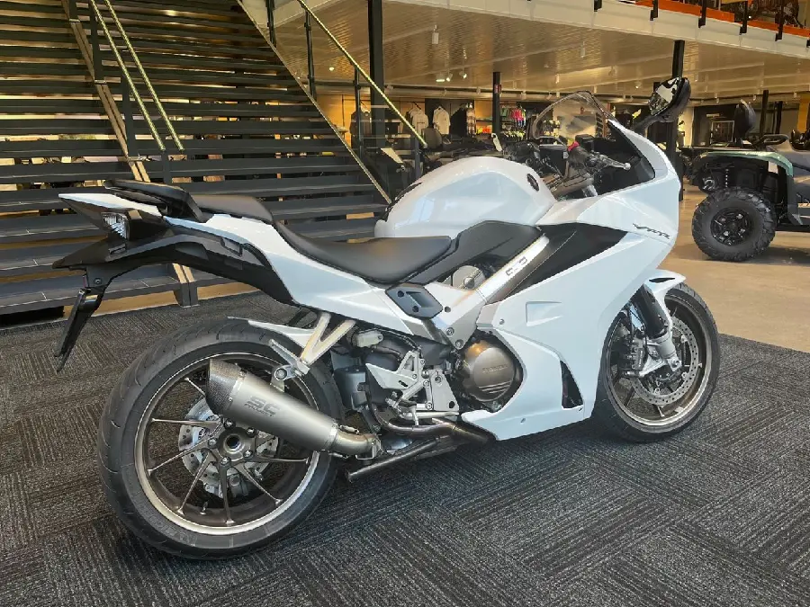 Honda VFR800 2014, en av de mest uppskattade sporttouring-hojarna på marknaden. V4-motorn levererar både kraft och karaktär, perfekt för både långresor och inspirerande landsvägskörning.