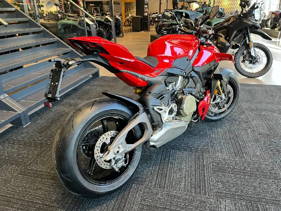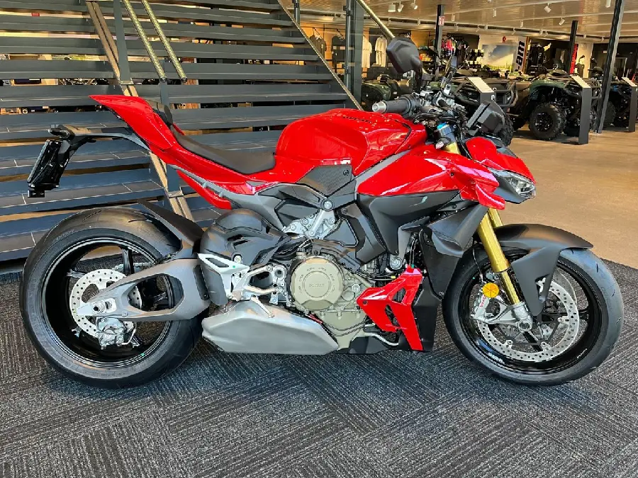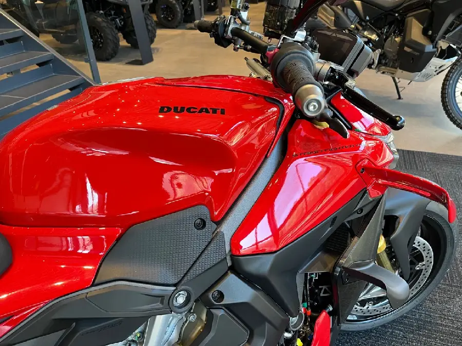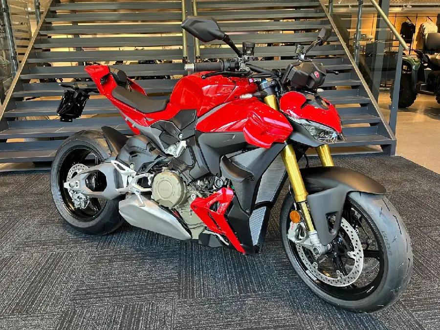 Streetfighter V4S kombinerar den brutala 214 hk Desmosedici Stradale V4-motorn med en aggressiv, avskalad design och den senaste elektroniken från Ducati. Med 123 Nm vridmoment och en våtvikt på endast 189 kg (utan bränsle) levererar den en explosiv men kontrollerad körupplevelse.