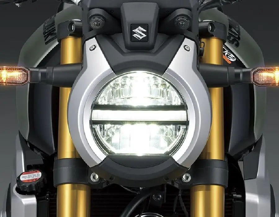 - 3-läges Traction Control (med OFF), ABS och Suzuki Drive Mode Selector – anpassa cykeln efter väder, väg och humör.