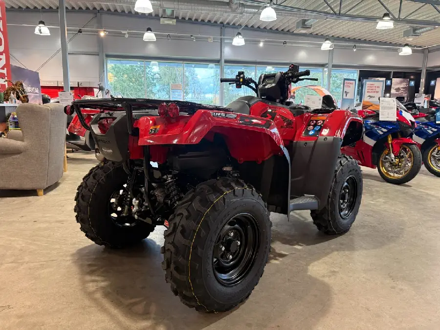 Större motor, nu på hela 518cc med mer effekt och bättre vridmoment. Kan köras helt automatiskt eller manuellt genom knapptryckningar på styret. Vill man växla upp eller ner i automatläget så är det bara att trycka på knappen. Honda TRX har dessutom motorbroms på samtliga fyra hjul om fyrhjulsdriften är inkopplad. Backen är nu el-styrd så med hjälp av en knapp på vänsterhandtaget är det bara att trycka in den och “växla ner knappen” så går backen i oavsett vilken... växel som ligger i. Den delade bakaxeln gör all transport, oavsett terräng till en behaglig färd, här finns även möjlighet till att ändra fjäderförspänning om man lastar mycket. Den automatiska diffbromsen hjälper till vid svår terräng och skulle det behövas kan man lätt koppla in den elektroniska diffspärren till framhjulen och få maximal drift på samtliga hjulen. Lätt svängd i all terräng med Hondas servostyrning.
