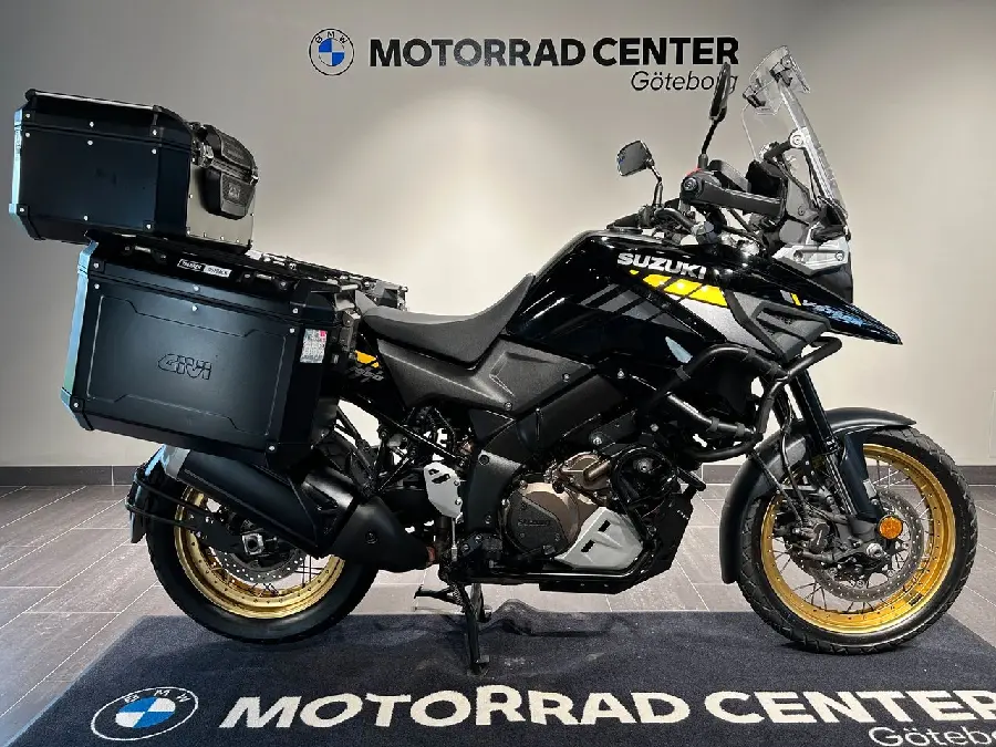 Vi erbjuder 2,95% ränta via Svea Finans. Ansök idag och hämta till våren. Gäller t.o.m 1/12 2025. Väl utrustad Suzuki V-Strom fån 2021 på 2433 mil. Nästa besiktning: 2026-05-31. Senaste service: 2025-08-27. Däck fram: 50%. Däck bak: 70%. Effekt: 107 hk. Utrustning: Höga & låga motorbågar, Givi Trekker alu-väskor, Kolfiber sänkskärm, Lextek kolfiber slip-on, Hasplåt, vindavvisare Puig, Handskydd, Aluminium kedjeskydd, Intelligent Ride System (S.I.R.S.), Inertial Measurement Unit (IMU), Motion Track Brake System & Combination Brake System, Hill Hold Control, Slope Dependent Control, Load Dependent... Control, Cruise Control, Suzuki Drive Mode Selector (SDMS), Suzuki Traction Control System (STCS), Wire-spoked wheels, Centralstöd. Original ljuddämpare och kedjeskydd medföljer samt tillbehör till väskor. Extranyckel samt instruktion/servicebok medföljer. Vi lämnar 3 månader eller 300 mil garanti på detta fordon. Vi tar hand om din inbytesmotorcykel och finansierar förmånligt ditt nya fordon. Exempel vid finansiering: 20% kontant: 21 179kr till en månadskostnad av 1 497kr under 72 månader. Kontakta oss på 031-3880003 för mer information.