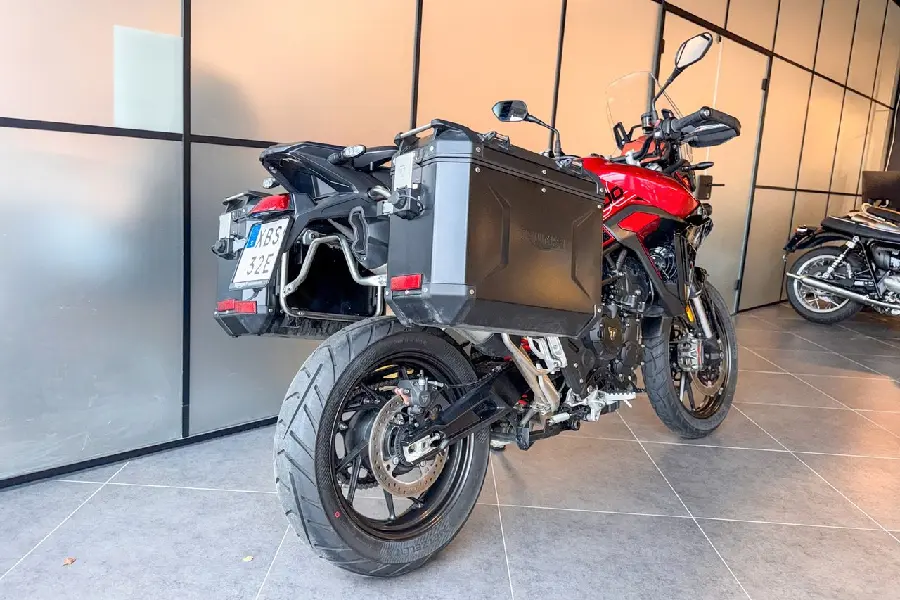 Triumph Tiger 900 GT Pro extrautrustad med 2 sidoväskor och tank pad.