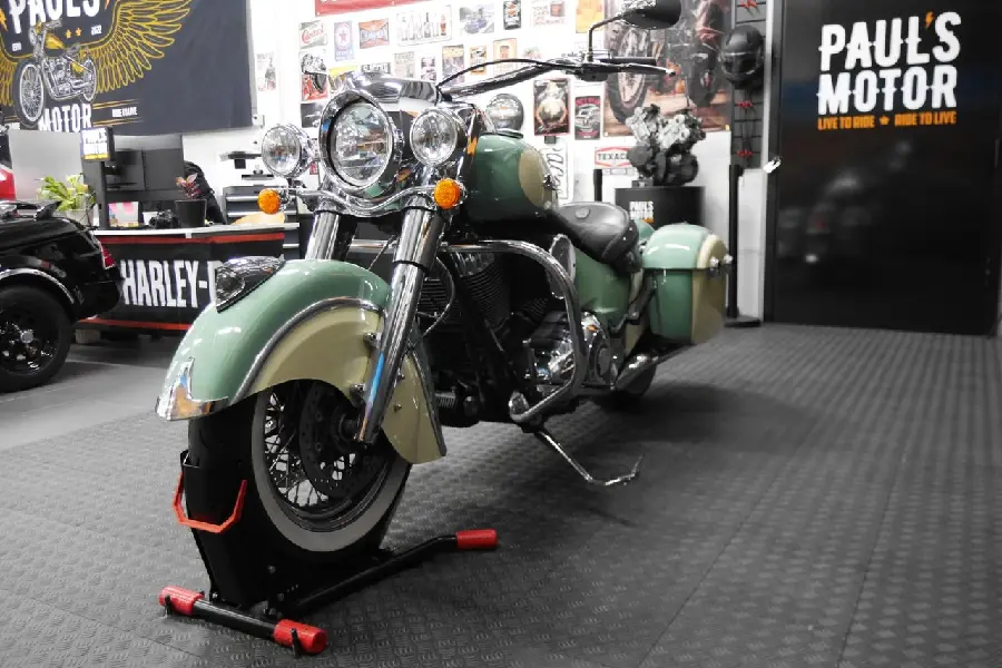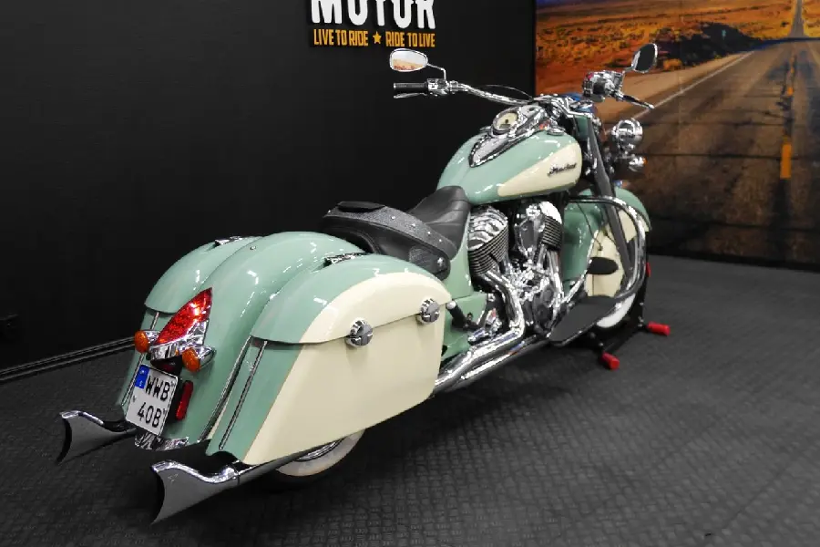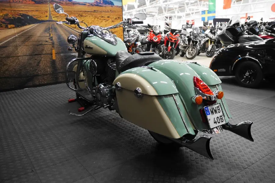 Nyinkommen Indian Chief i en riktigt fin färgkombination och även utrustad med fishtail avgassystem, motorbågar, fotplattor m.m.