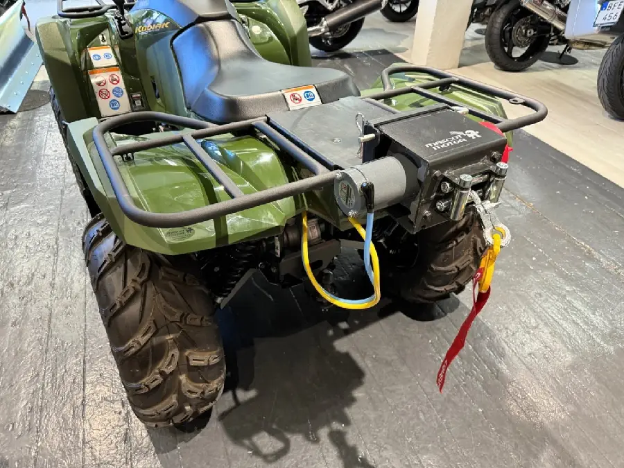 Tillfälle! Ny Yamaha YFM 450 KODIAK EPS Difflock utrustad med Yamaha Grundpaket. Grundpaket innehåller: Vinschfäste bak, Kabelsats o brytare för fram/bak vinsch, Fjärrkontroll inkl hållare, Snöbladsfäste och Hasplåtssats komplett. Ord. paketpris 17.595:-+ montering 3.400:-. Nu detta visnings ex ATV med Grundpaket: 118.900:- inkl. moms. Ord. p: 130.895:- - 5 års Yamahagaranti