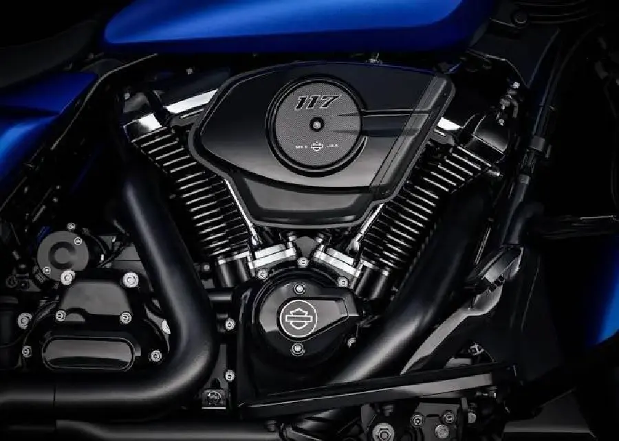 Milwaukee-Eight 117 levererar 80 kW och ett vridmoment på 175 Nm Vätskekylda toppar och en mittmonterad kylare bibehåller både prestanda och förarkomfort när temperaturen stiger. Detta gäller oavsett om du kryper fram i stadstrafik eller jagar horisonten..