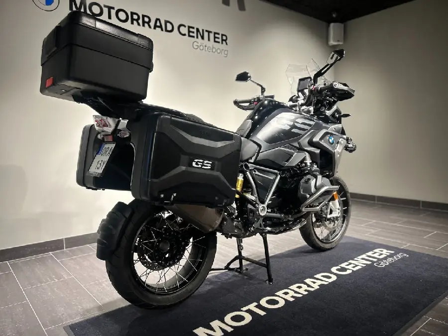 R1250GS av -23 års modell på endast 606 mil med väskor, Akrapovic och serviceavtal. Nästa besiktning: 2027-04-30. Senaste service: 2025-04-25 på 429 mil. Nästa service: 2026-04-25 eller vid 1429 mil. Däck fram: 80%. Däck bak: 80% Effekt: 136 hl. Utrustning: Akrapovic, 3st Vario-väskor, daptive Headlights, Engine drag torque control, Dynamic ESA, Keyless Ride, Design option rear silencer, Daytime running lights, Deluxe headlight, Gearshift assistant Pro, Driving modes Pro, Comfort Package, Touring package, Dynamic package, Preparation navigation unit, Exhaust manifold chrome-plated, Style Triple... Black, Heated handlebar grips, RDC, Cruise control, Additional headlight, Hand protector, Cruising Light, Multifunctional turn signal bulbs, Multifunctional turn signal bulbs II, Alarm system, Engine protection bar, Case holder left/right, Intelligent emergency call, Teleservices, Cross-spoke wheels. Extranyckel samt instruktion/servicebok medföljer. Fabriksgaranti gäller tom: 2027-05-02 på detta fordon. Vi tar hand om din inbytesmotorcykel och finansierar förmånligt ditt nya fordon. Exempel vid finansiering: 20% kontant: 45 179kr i 36 månader med 55% i restvärde till en månadskostnad utav: 2 462kr. Kontakta oss på 031-3880003 för mer information.