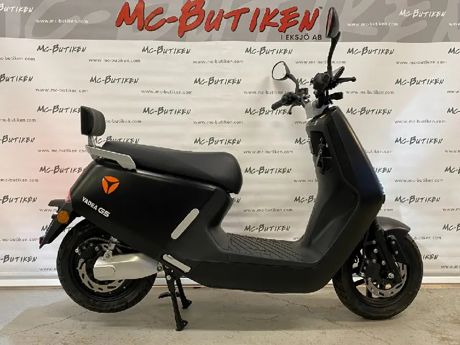 Med dess stilrena design finns det gott om plats för både förare och passagerare. Motorn är tyst och stark och har två effektlägen. Det högkvalitativa Panasonic batteriet är placerat under fötterna med en låg tyngdpunkt och jämn viktfördelning som ger ett välbalanserat fordon. Battericellerna har en talk-back funktion som i kombination med den tillhörande smartladdaren optimerar batteriets livslängd. Elsystemet och komponenterna är dessutom designade för att klara vårt nordiska klimat med regn salt och kyla. Yadea G5 har 12 tums hjul som ökar komfort och säkerhet. Det finns även ett USB-uttag för laddning av t.ex. smartphone och det rymliga hjälmfacket är placerat under sadeln.