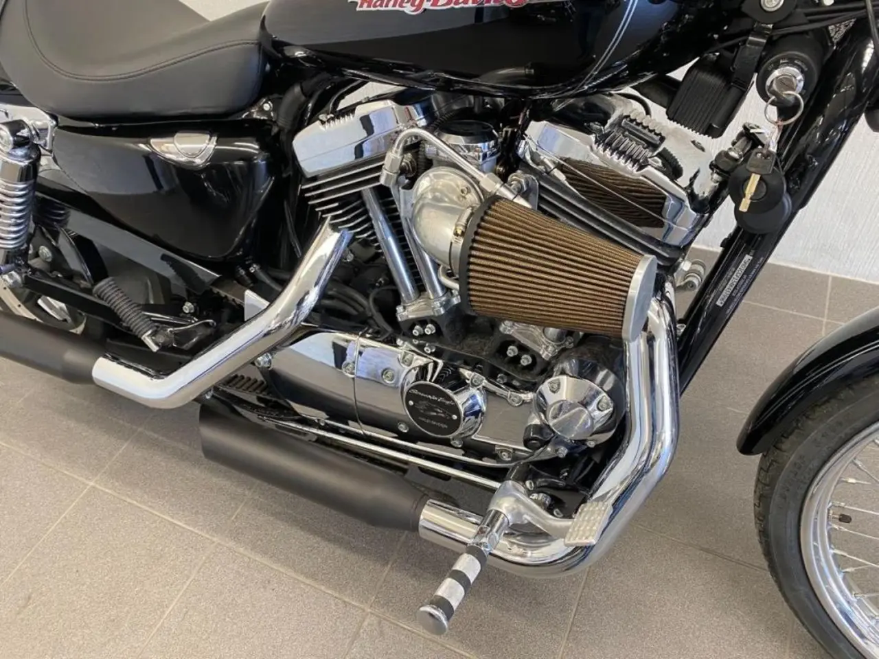 Harley Davidson XL1200 C i fantastiskt fint skick. Endast 2 ägare sedan ny och rikligt utrustad med massa trevliga delar. Hojen är injusterad i bänk och går väldigt bra. Samtliga originaldelar ingår. Levereras nybesiktigad och servad med 100 dagar och 100 mils garanti.