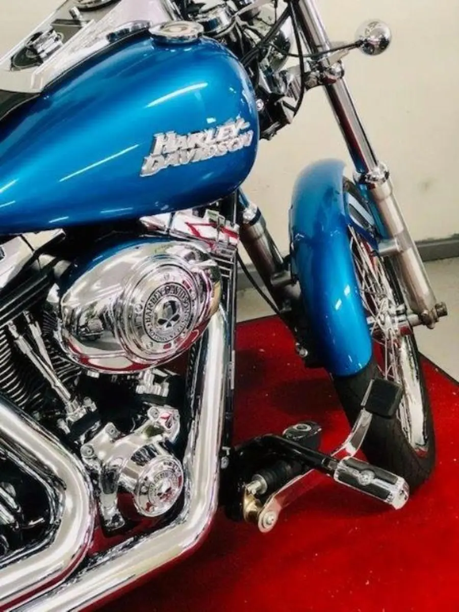 Jättefin Blå Softail Custom.