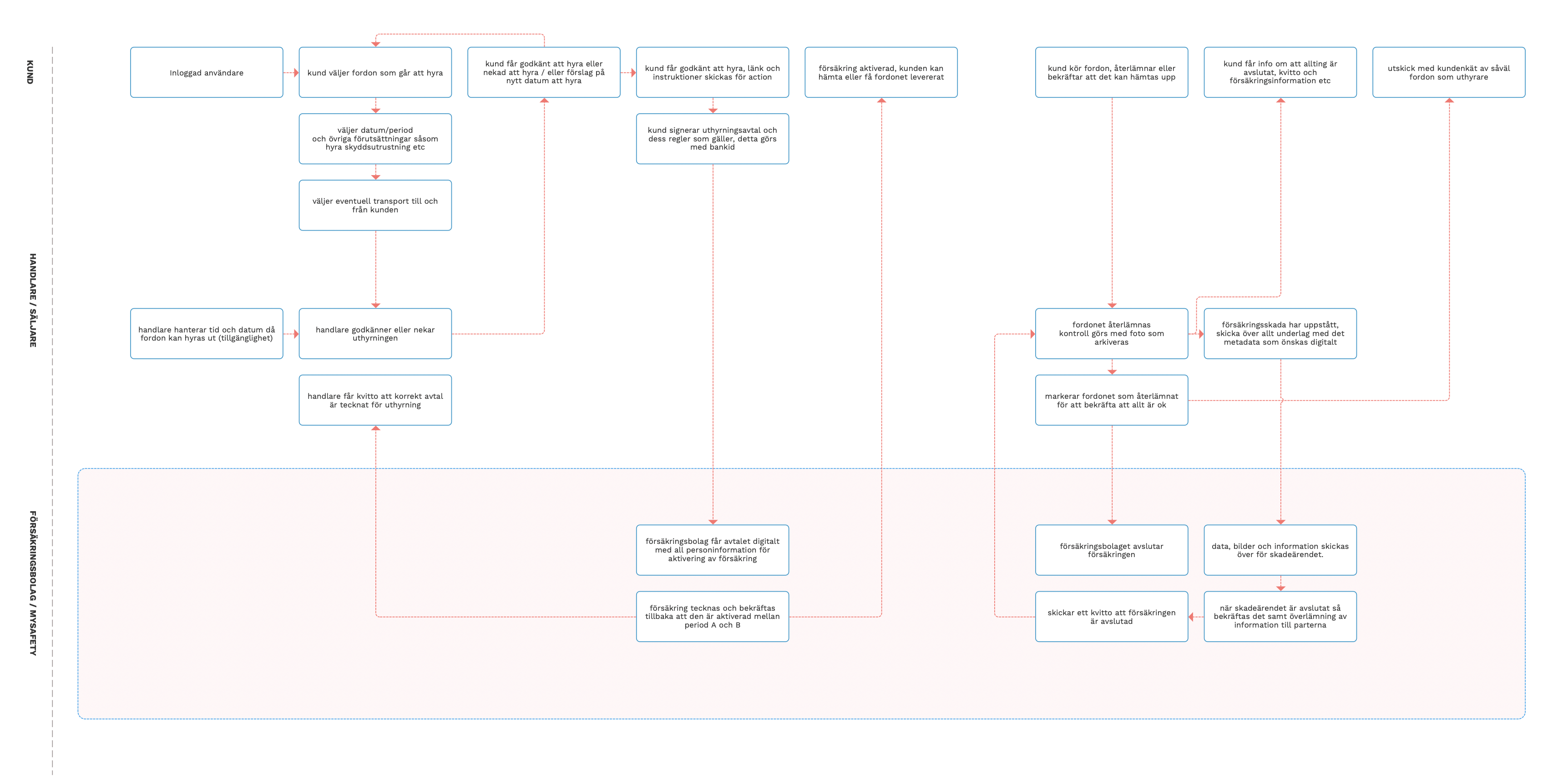 Tre parter berörs i denna process. Det är kund, uthyrare samt försäkringsbolag.