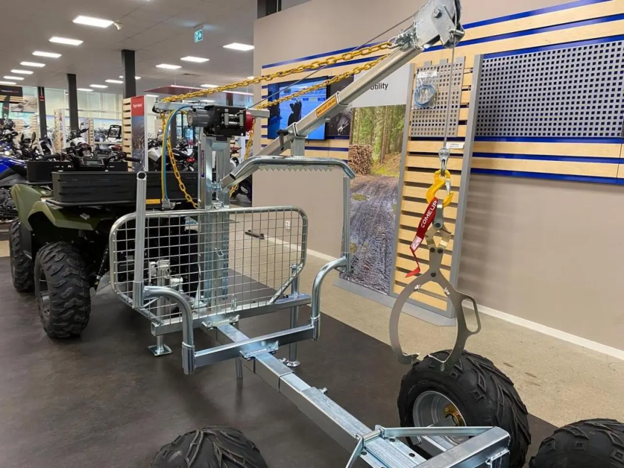 Denna Grizzly 700 EPS har vi utrustat med Timmervagn proffs, samt Stora skogspaketet. Timmervagnen är komplett med allt du behöver för att hämta fällda träd. Stora skogspaketet innehåller lastlådor, hasplåt och extra vinsch med fjärrkontroll. Välkommen in för en demonstration.
