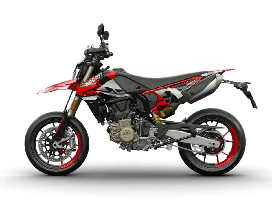 En mycket "lättsinnig" Ducati. Den första encylindriga Supermotard från Ducati, född med bara ett mål – att överföra spänning och dominera scenen. Enkel, lätt (151 kg,) och smidig, det är en riktig "rolig cykel" med racing-DNA. RVE modellen har förrutom sin distinkta lackering också QuickShift som standard.