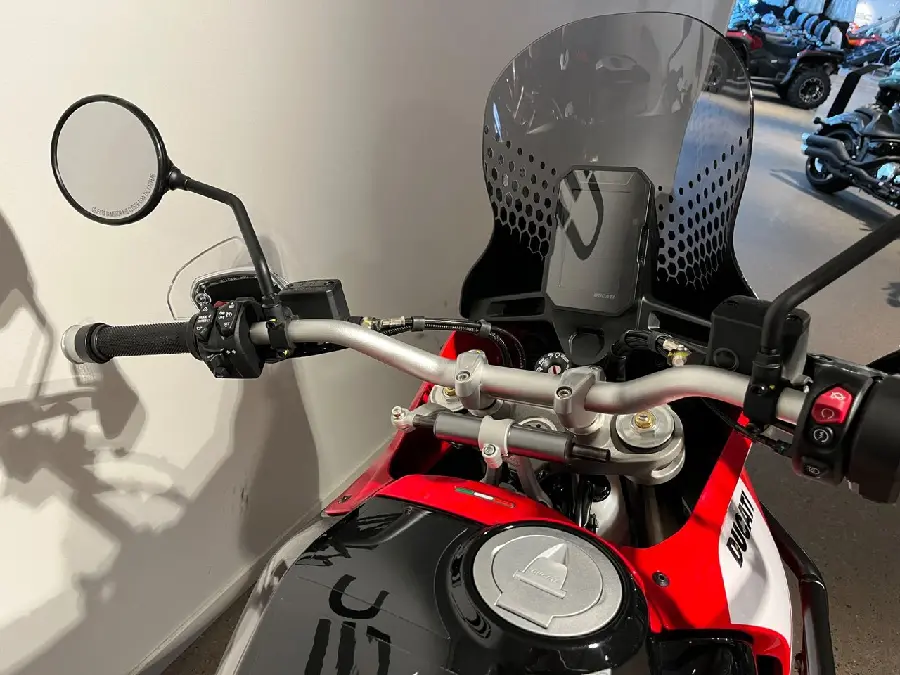 DesertX Discovery är den mest resklara versionen av Ducatis adventurehoj. Med 937 cc Testastretta-motorn på 110 hk, lång fjädringsväg och 21” framhjul är den redo för både asfalt och tuff terräng. Utrustad med touring och skyddspaket från start erbjuder den komfort, säkerhet och kapacitet för långa resor, oavsett underlag.