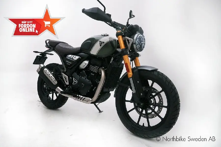 En Speed 400 och en Scrambler modell. Otroligt prisvärda motorcyklar som ej kompromissar på kvalité eller stil trots sin mindre motor.