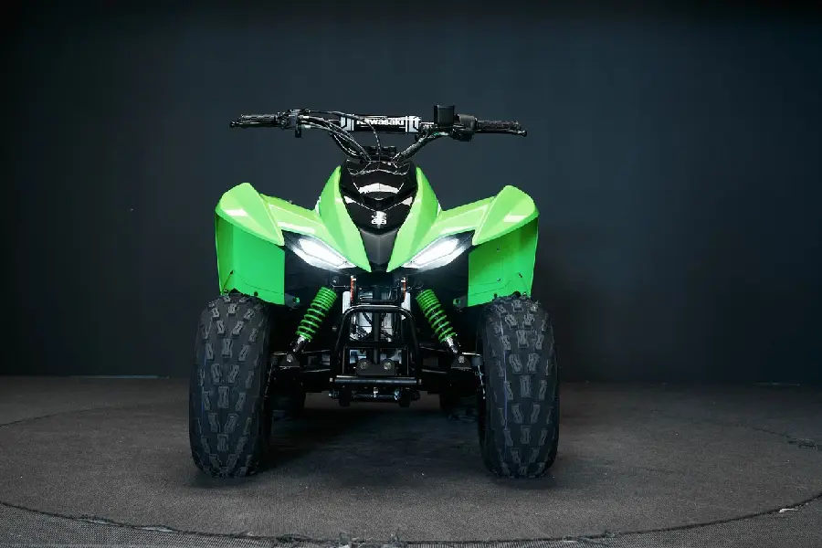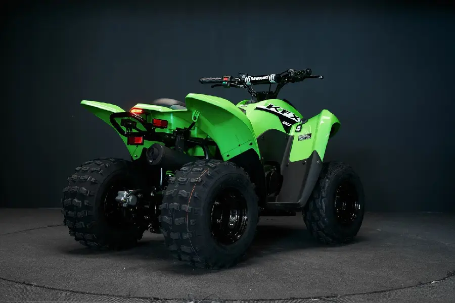 Fyrhjuligt kul börjar med KFX90. Få barnen utomhus och redo att köra med KFX90 ATV-serien, som har proportionerlig kraft och storlek för förare från 10 år och uppåt. KFX90 ATVs låter barnen ta sig an mer utmanande banor och större äventyr med en 89, 9 cc motor och sportig fjädring.