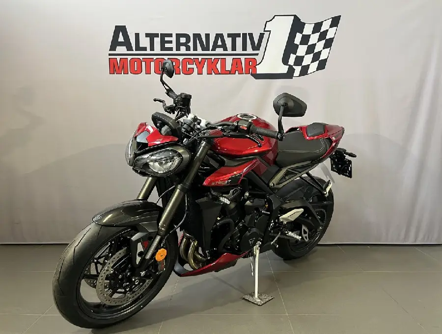 Triumph Street Triple RS 765. Racing-DNA. Gatutuff. Teknologiskt överlägsen. Upplev den mest kraftfulla och tekniskt avancerade Street Triple någonsin. Med inspiration från Moto2?-racingen är nya Street Triple RS 2025 en kompromisslös streetfighter byggd för att dominera både bana och gata. Aggressiv ny design med bredare styre och ny geometri. 5? TFT-display med flera visningslägen och Bluetooth-stöd. Utvecklad med Moto2?-teknik. 128 hk & 80 Nm ? klassledande kraft och respons. Slip & assist-koppling för smidigare växlingar och bättre kontroll. 5 körlägen: Rain, Track & Rider. Kurv-ABS & traction... control optimerade med IMU för maximal säkerhet. Front Wheel Lift Control för kontrollerad acceleration. Showa 41 mm Big Piston-gaffel fullt justerbar fram och Öhlins STX40 bakdämpare med piggyback-reservoar fullt justerbar. Brembo Stylema-bromsar med dubbla skivor för extrem bromskraft. Triumph originaltillbehör finns för att sätta din egen prägel på din Street Triple RS. Detta är vår demohoj - kan säljas tidigast 2025-09-29. Priset i annonsen avser en fabriksny likadan mc. #Triumph #Triumph Street Triple #Triumph Street Triple RS #Street Triple RS #RS #Triple #StreetTriple #Street Triple #Naked #Performance #Street #Sport #trackday #bana #EOL07R #EOL #07R
