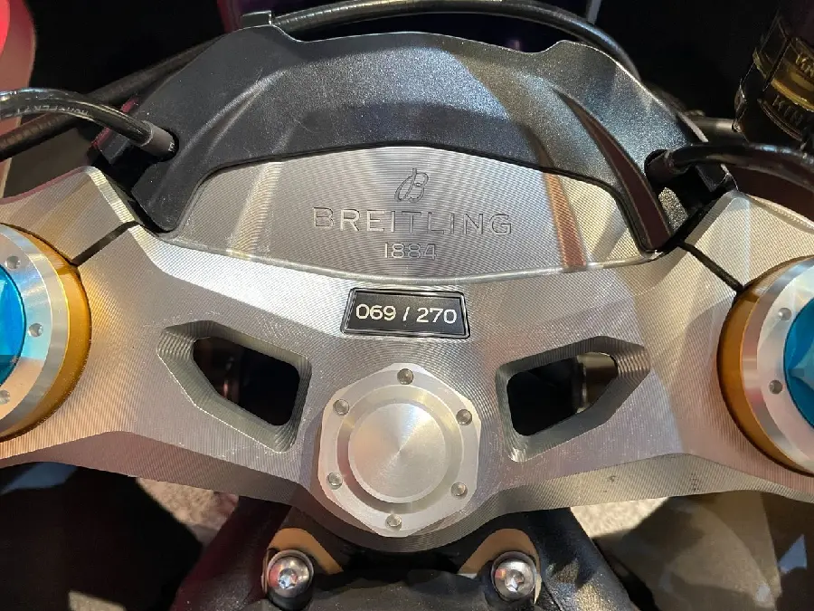 MC-Jalle säljer sin exklusiva Speed Triple 1200 RR Breitling Edition #69/270 tillverkade, och det finns bara två stycken i Sverige. Förutom den mycket omfattande standardutrustningen har Jalle monterat R&G Tail Tidy, PUIG mörktonad ruta något högre än standard, Triumph original värmehandtag samt en original tankväska.