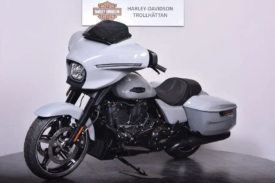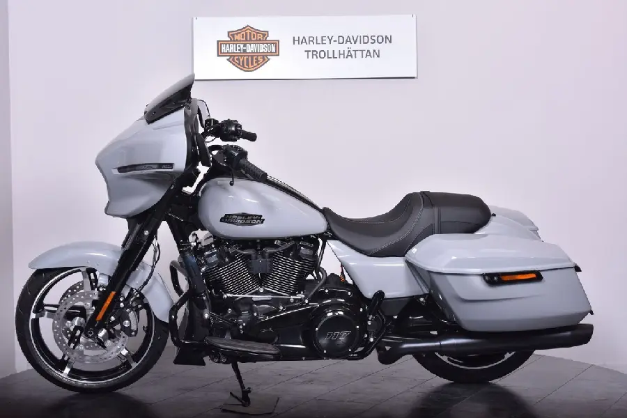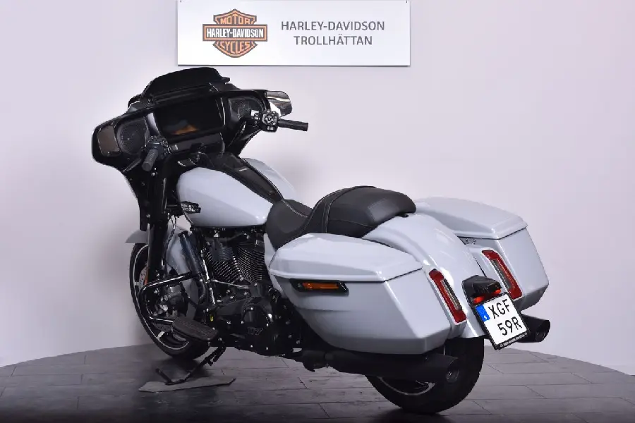 Nu har vi nöjet att erbjuda en Harley-Davidson Street Glide 2025 – En modell som förfinats ytterligare till 2025, med uppdaterad elektronik och Milwaukee-Eight 117-motorn som levererar rejält med vrid. Street Glide är en äkta bagger, byggd för att ta dig långt med stil, ljud och komfort i toppklass. Med V-Twin-motorn får du mer kraft än någonsin tidigare i en standard-Glide. 1 923 kubik, och en känsla av kontroll och tyngd i varje växling.