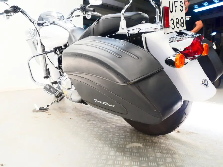 En Road King Custom -07 i vit pearl! Big Radius-system (original och även turn-downs följer med), snyggt pinstripad framskärm m.m.