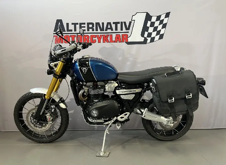 Triumphs Scrambler 1200 XE från 2019 med låga 226 mil på mätaren. En brukare sedan ny. Triumph Bonnevilles klassiska 1200 cc parallelltwin med modern design och förstklassig förarkomfort utan att glömma Triumphs genuina DNA både onroad och offroad. 6-växlad med 90 hk och hela 1600 mils service-intervaller. TFT-skärm med möjlighet till bluetooth-koppling. 5 körlägen. Farthållare. ABS. Avstängbar TC. Öhlins fjädring. Handtagsskydd. Nyckellös tändning. LED-belysning. USB-laddning. Bakgrundsbelysta manöverknappar och joystick. Extra utrustad med : Sidoväska. Liten ruta. Arrow Ljuddämpare. Senast servad... augusti 2025 vid 225 mil. Besiktigad till september 2027. Detta är en förmedling så inget inbyte på denna hojen. #Triumph #Scrambler #XE #Scrambler XE #1200 #Scrambler 1200 #Scrambler1200 #Modern Classic #off-road #Äventyrshoj #Grushoj #Grusvägshoj #TZG37X #TZG #37X