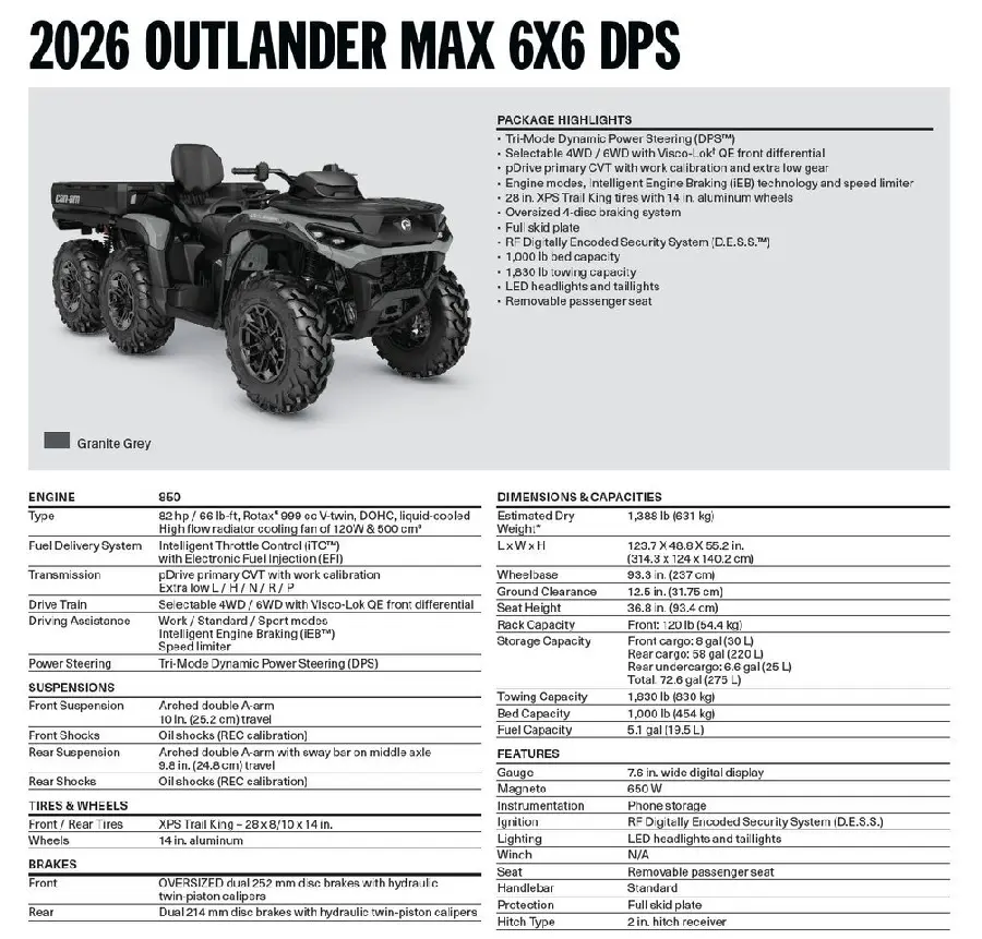 0002HTC00 Outlander MAX 6x6 DPS T 850 Granite Grey T3b - 60km/h