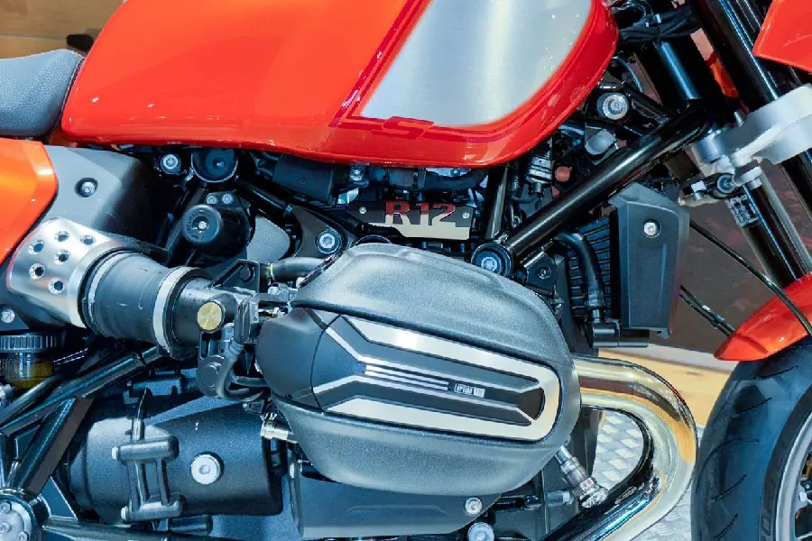 Denna retroinspirerade café racer hyllar ikonen R 90 S från 1970-talet med en modern twist. Med sin iögonfallande Lava Orange Metallic-lack, borstad aluminium och röda detaljer är R12 S en visuell fullträff som väcker nostalgi och beundran. Med en kraftfull 1170 cc luft/oljekyld boxermotor som levererar 109 hk och 115 Nm, perfekt för dynamiska körupplevelser. Den ergonomiska designen, baserad på R12 nineT, erbjuder en sportig sittställning, medan standardutrustning som ABS Pro, DTC, Shift Assistant Pro, Hill Start Control och uppvärmda handtag garanterar komfort och säkerhet. Den aerodynamiska kåpan, Option 719-ekerfälgar och adaptiva Headlight Pro lyfter både stil och funktion. R 12 S är inte bara en motorcykel – det är en livsstil. Med sin unika retrokänsla och moderna teknik är den byggd för dig som vill sticka ut och känna historiens vingslag på varje tur.