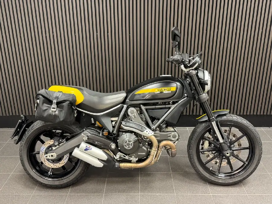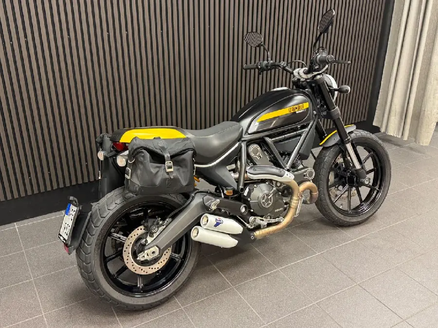 Utrustning: Sidoväskor. Värmehandtag. Bra att veta: Senaste service är gjord vid 1614 mil 2025-05-13. Besiktad till 2026-09-30. (Scrambler 800)