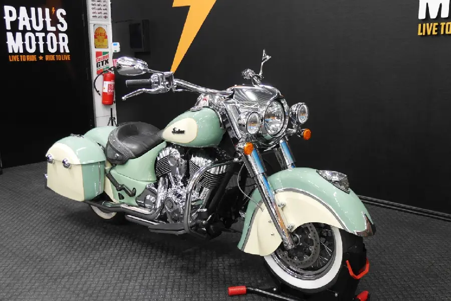 Nyinkommen Indian Chief i en riktigt fin färgkombination och även utrustad med fishtail avgassystem, motorbågar, fotplattor m.m.